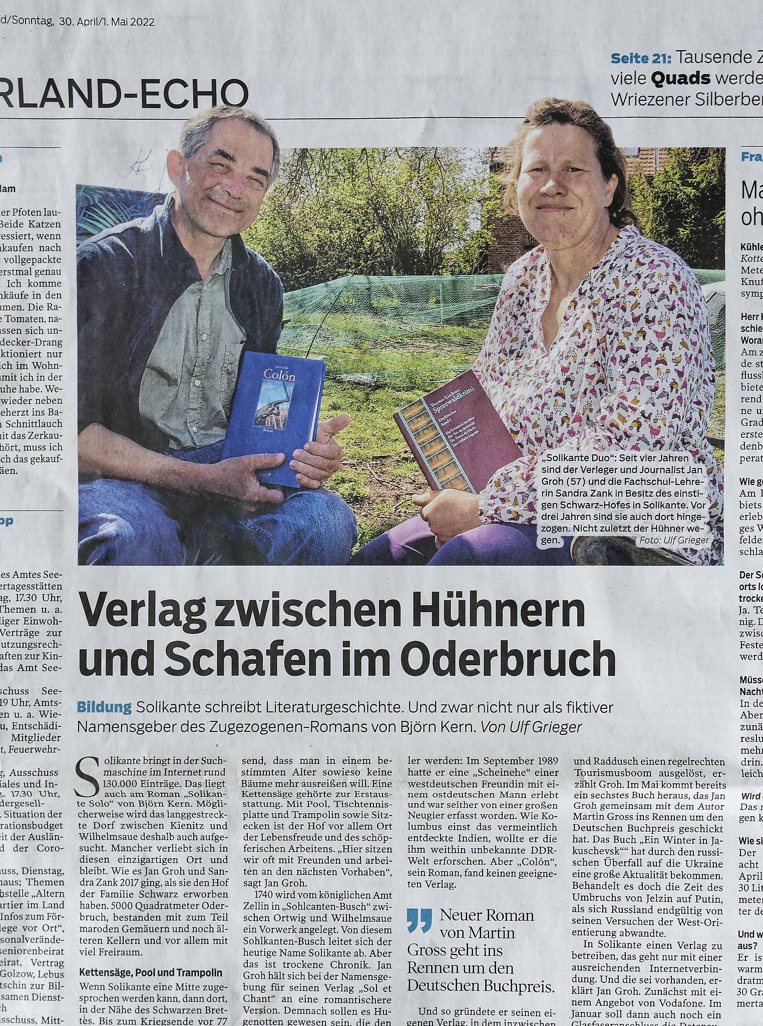 Es ist eine große Nachricht für unseren kleinen Verlag: