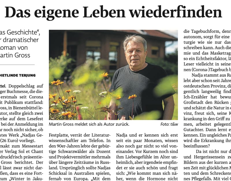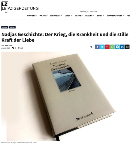 Ralf Julke von der Leipziger Zeitung beleuchtet in seiner Rezension von Martin Gross’ neuem Roman „Nadjas Geschichte“ sehr differenziert die per-sönlichen und politischen Hintergründe des Buchs und kommt zu dem Schluss: „Vieles von dem, was die Sicht der Russen auf den Westen ausmacht, wird in diesen Tagebuchaufzeichnungen sichtbar“.
