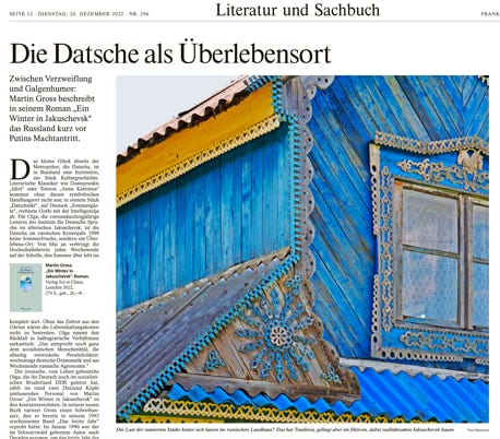 30.06.2022 Eine großartig klarsichtige Rezension von Martin Gross’ aktuellem Roman Ein Winter in Jakuschevsk ist in der Leipziger Zeitung erschienen.